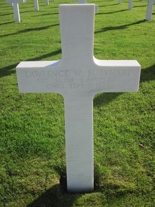 Lawrence Burkhart enlisted on 11 May 1942.His remains were found by a German civilian in May 1945, lying on the ground. He was not buried due to the fact there were mines in the area.
