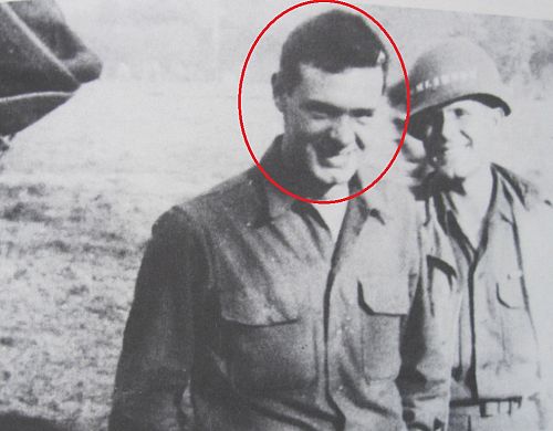 On onz picture he poses with Emmett L. Tomlinson, who is buried at Margraten Cemetery.