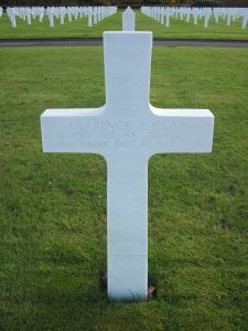 From Judy Wiles: "Our Clarence who went by the name Butchie, was married to my husband's aunt Rowena Wiles on 26 March 1943. Stationed in France, he was shot in the hip and eventually captured by the Germans. Because he had been wounded, he could not keep up with the march. His buddies carried him as much as possible but he was still slowing down progress. Therefore, the enemy stopped beside the road and shot him."