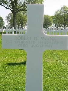 Robert D. Swank was a carpenter before he volunteered for the Army of the United States in Cleveland, Ohio, on 25 March 1942. He was sent overseas in June 1943.On the way to the target, his B-17 was hit by flak and fell out of formation. It was then attacked by enemy fighters and exploded.