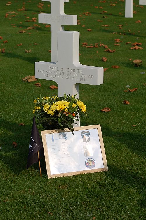 Paul R. Carter was killed together with Prentice Hundley who was his assistent behind the machine gun.Source of information: Frank Gubbels, www.ww2-airborne.us, www.ancestry.com - Family Trees / Birth Index