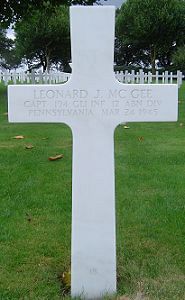 After the LaSalle College, where Leonard Mc Gee studied, and passed cum-laude, he was admitted to the Thomas Jefferson Medical College in Philadelphia. He became a doctor and a surgeon when he was only 25 or 26 years. In the nine months he worked at the Nazareth Hospital, before the war interrupted, he met Mabel Agnes Doyle, operation nurse from Nova Scotia, Canada. They married and got a son, Terry.After paratrooper training, he arrived in England on 28 august 1944.