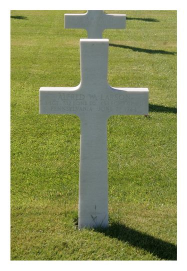 The airplane was hit by flak.The plane crashed 2 km northeast of Vlissingen. Alfred Larson was first buried at the cemetery of Vlissingen.
