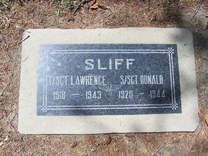 Together with his brother, T/Sgt Lawrence Sliff, who is listed on the Walls of the Missing at Margraten, he is remembered at the San Jacinto Valley Cemetery in San Jacinto, Riverside County, California.