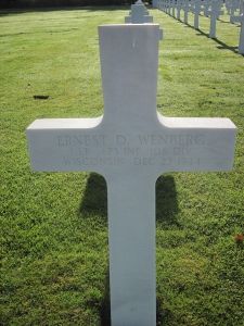 He was a graduate of Nicolet High School and the University of Wisconsin medical school. The son of a minister, he served as the President of the Wesley Foundation Methodist campus organization.A Doctor, Lt Wenberg entered the Army on completion of his internship in Denver, Colorado. He took a three-months course in psychiatry at Columbia University before going overseas two months before his death.