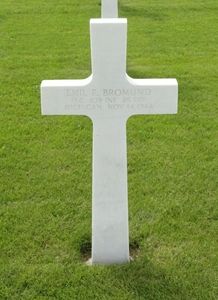 Pfc Emil F. Bromund graduated in 1938 from the University of Michigan as well as attended Graduate School in 1939-1940. He was a teacher in Lampeer County, Michigan.
