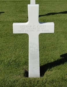 Pfc Delmar C. Cadle first buried at the Temporary American Military Cemetery of Fosse, Belgium.
