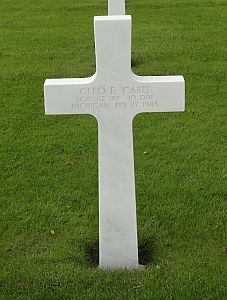 Cleo Card attended Hastings high School and was employed at Hastings Manufacturing.He enlisted in December 1942 and was sent overseas in March 1944.
