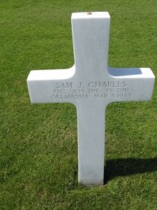 Pfc Sam J. Charles enlisted in Tulsa, Oklahoma on 26 October 1943.
