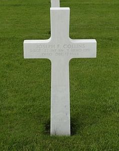 S/Sgt Joseph Collins enlisted on 27 October 1942 at Cleveland, Ohio.Together with seven of his comrades, he was executed by members of Kampfgruppe Peiper of the 1st SS Panzer Division, Leibstandarte Adolf Hitler. They were all shot in the head. A monument, right next to the hotel, commemorates them.