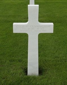 Pfc Cunningham died of a head wound. He was initially buried in a temporary grave at Henri-Chapelle on 17 January 1945 and was given his final resting place on 16 August 1948.