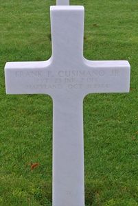 Pvt Frank P. Cusimano Jr. worked as a driver before he enlisted in Baltimore, Maryland on 16 April 1943. He was sent overseas on 25 December 1943.He died of wounds, received on 24 October 1944.