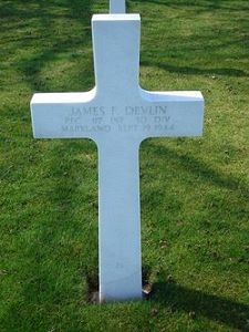 Pfc James F. Devlin enlisted in Baltimore, Maryland on 12 February 1943.Source of information: Raf Dyckmans, Carla Mans, www.wwiimemorial.com, www.archives.gov - WWII Enlistment Record, www.ancestry.com - Headstone and Interment Record / U.S. WWII Draft Cards Young Men / 1930/1940 Census, www.oldhickory30th.com