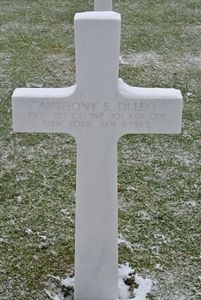 Pvt Anthony S. Di Leo was a stockroom clerk before he enlisted on 19 April 1943 in Rochester, New York. He was sent overseas in December 1943, and was reported wounded in action on 11 June 1944. After recovering, re rejoined his unit.He was first buried at the Temporary American Military Cemetery of Foy, Belgium.