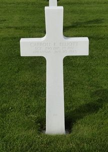 Sgt Carroll E. Elliott first buried at the Temporary American Military Cemetery in Margraten, the Netherlands.Source of information: André Koch, Terry Hirsch, Carla Mans, www.wwiimemorial.com, www.archives.gov, http://hldnoqtr.tripod.com/kia_roster.htm, www.ancestry.com - Headstone and Interment Record / U.S. WWII Draft Cards Young Men / 1930 Census, http://75thdivisiondad.com