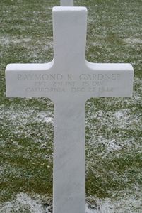 Pvt Raymond K. Gardner enlisted in Sacramento, California on 17 December 1943. He attended four years of high school.Source of information: Peter Schouteten, Carla Mans, www.wwiimemorial.com, www.archives.gov, http://75thdivisiondad.com/kia_roster.htm#3, www.fold3.com - WWII Draft Card, www.newspapers.com, www.ancestry.com - Family Tree / WWII Enlistment Record