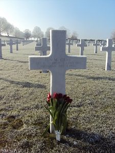 According to a newspaper article, Cpl Gray got out of his tank and with the help of another soldier dragged many wounded men on their backs while crowling on their stomach to safety. While returning to his own tank, he stepped on a mine.