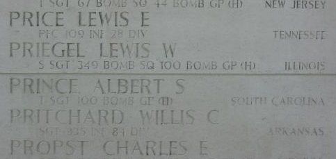T/Sgt Albert S. Prince attended college for two years and was an actor before he joined the Air Corps of the Regular Army at Fort Jackson Columbia, South Carolina on 20 August 1941.Eyewitnesses state that the 'Sassy L' or 'Sassy Lassy' was hit by flak as bombs were released. The aircraft disintegrated and no parachutes were seen. Later reports suggest it may have been bombs from another B-17 that destroyed the 'Sassy L'. There is no confirmation of this and the fate of the aircraft will probably never positively determined. The Casualty Report states the plane was hit by flak in the bomb bay. All 9 crewmen were killed. Six are listed on the Walls of the Missing at Margraten. The remains of William F. Edmondson and Herman F. Herhamer returned to the Unites States and Ralph O. Ingalls is buried at the American Military Cemetery of Lorraine.