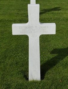 Pfc Leonard T. James is remembered at Fairview Cemetery, Homer, Calhoun County, Michigan and at WW2 Memorial in Coldwater, Michigan.