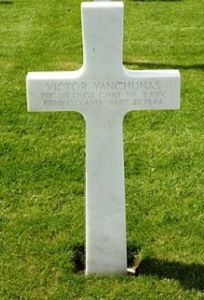 Pfc Victor Yanchunas was first buried at the Temporary American Military Cemetery of Fosse, Belgium.