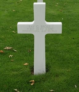 T/Sgt Ray G. Bross enlisted in New Cumberland, Pennsylvania on 23 September 1941.He is remembered at the Zion Church Cemetery in Strausstown, Berks County, Pennsylvania.