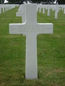 Pvt William F. Davis first buried at the Temporary American Military Cemeteryof Molenhoek, The Netherlands.
