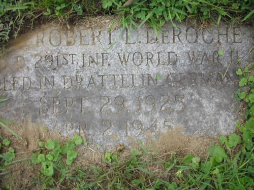 Robert De Roche enlisted on 4 January 1944 at Portland in Maine.He is remembered at Riverside Cemetery in Farmington, Franklin County, Maine.