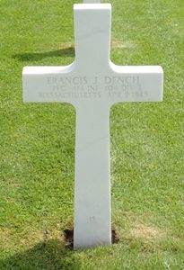 Pfc Francis J. Dench enlisted in Boston, Massachusetts on 20 May 1943. He attended Hyde Park High School for 3 years and worked in a metal factory before he enlisted.Source of information: Raf Dyckmans, Astrid van Erp, www.wwiimemorial.com, www.archives.gov, www.ancestry.com - Family Tree / 1940 Census