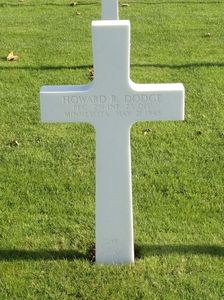 Pfc Howard R. Dodge worked as a welder for the U.S. Air Conditioning Company in Minneapolis. He enlisted in November 1943 and had his basic training at Camp Roberts, California. He was later transferred to Camp Breckenridge, Kentucky where he joined his regiment. Further training was received at Camp Buckner, North Carolina from where the unit moved to the point of embarkation, Fort Meade, Maryland.He was killed by an accidental gunshot wound penetrating his chest.