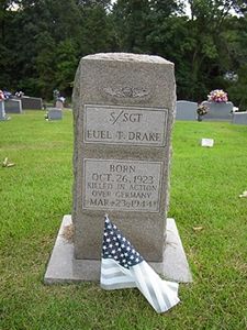 S/Sgt Euel Drake enlisted on 22 July 1942 at Fort Mc Clellan, Alabama.His aircraft was attacked by 20 FW-190 fighters and crashed at Rengerhausen. He was killed by flak fragment in the chest when his turret received a direct hit. He was buried in the NW corner of the Old Graveyard in Rengershausen and reinterred at Margraten on 4 June 1945.