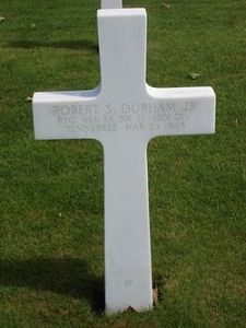 Pfc Robert Durham Jr. enlisted 29 April 1943 at Fort Oglethorpe, Georgia. There he took his parachute training.Source of information: André Koch, www.wwiimemorial.com, www.archives.gov - WWII Enlistment Record, www.ancestry.com - 1930 Census, www.ww2-airborne.us
