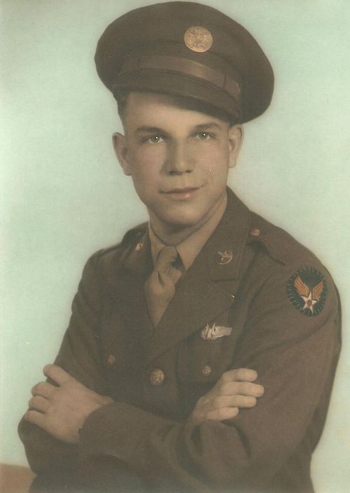 S/Sgt Robert Glaman graduated from Freeport High School shortly before he enlisted on 14 April 1943. He was sent overseas in September 1944.The intended target was to bomb the marshalling yard of Chemnitz with 332 airplanes, but 38 attacked the airfield of Eger as a target of opportunity. According to the MACR, this airplane was part of these 38.