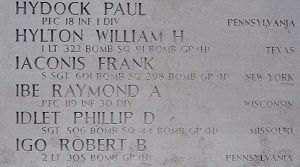 Pfc Raymond A. Ibe graduated from Central High school in 1941 and was employed at Rex Theatre.He enlisted on 21 December 1942 in Milwaukee, Wisconsin. He was stationed at Fort Sheridan; Camp Robinson, Arkansas; Fort Sill, Oklahoma; Camp Bowie, Texas; and Camp Atterbury, Indiana. He was sent overseas in February 1944 to England.