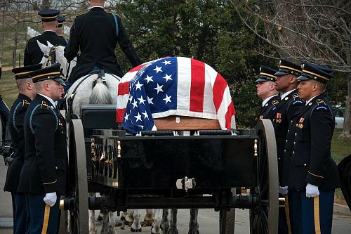 He was given his final resting place on 28 March 2018 at the Arlington National Cemetery.