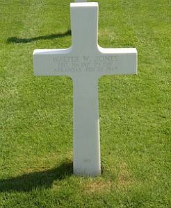 Pfc Walter Jones was awarded the Silver Star Medal posthumously for his actions on 25 February 1945. The citation reads: On 25 February 1945 the leading platoon of Company F, of which Pfc Jones was Automatic Rifleman, had advanced to within four hundred yards of the town of Serrest when it was suddenly fired upon by an enemy self-propelled gun. Pfc Jones, completely disregarding the intense enemy fire and his own safety, continued to advance, returning the fire with his automatic rifle. Although he became the direct target of the enemy weapon he nevertheless kept a heavy volume of fire upon the position until a tank arrived and neutralized the weapon. His actions reflect great credit upon himself and the Military Service.