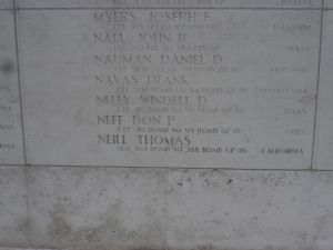 On the route back over the North Sea, approximately 25 miles out off the coast of Germany, and under enemy fighter attack, the plane left formation and was seen to spin down, out of control, exploding on hitting the water and sinking immediately. Two to four parachutes were reported as seen leaving the plane, but eventually, all of the crew members were reported missing in action.Six crew members are remembered on the Walls of the Missing at Margraten: Richard C. Miller, John J. Vail, Windell D. Neely, John F. Davoren, Stanley D. Bennett, and George E. Babich.