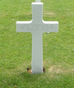 Pfc John Niemczura Jr. graduated from Campbell Memorial High School in June 1942, and worked for a while at the Youngstown Sheet and Tube Co.He enlisted in Akron, Ohio on 18 August 1943 and trained at Camp Gruber, Oklahoma. He was sent overseas in April 1944.