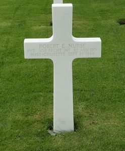 Pvt Robert E. Nurse was a shipbuilder before he volunteered for the Army of the United States in Boston, Massachusetts on 30 July 1942.He was first buried at the Temporary American Military Cemetery of Molenhoek, the Netherlands.