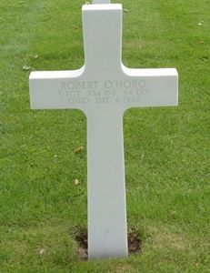 Robert O'Horo graduated from Ursuline High School and attended Detroit University.He enlisted on 3 April 1943. He was selected for the Army Specialized Training Program for which he was sent to Virginia Polytechnical Institute. When the program was disbanded, he was transferred to the infantry.