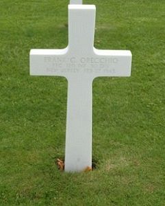 Pfc Frank C. Orecchio enlisted in Newark, New Jersey on 26 April 1943.He was a graduate of Somerville High School where he was one of the mainstays of the varsity football team. He was employed by the Central Railroad of New Jersey before his enlistment. For 19 months he trained with an anti-aircraft unit, but on a reassembling of units was transferred to the Infantry. Pfc Orecchio served on the Belgian and German fronts.