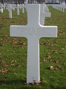 Pfc Stephen G. Pickett graduated from Lincoln High School in 1943. He majored in mathematics and drawing and his hobby was boats. He was a draftsman at the Western Boat Building Co., and deacon in the Roosevelt Heights Christian church.He enlisted in Seattle, Washington on 7 June 1943.