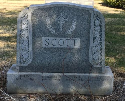 Lt. Scott is remembered at Saint John of God Cemetery in Central Islip, Suffolk County, New York.