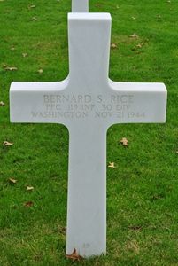 Pfc Bernard S. Rice enlisted in Seattle, Washington on 9 June 1943.Pfc Rice had to transport a wounded German soldier to a field hospital and was killed when his Jeep ran over an landmine.