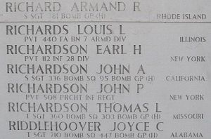 S/Sgt Richardson is remembered at Salem Pioneer Cemetery in Salem, Marion County, Oregon, on the marker of his father, Samuel Richardson.