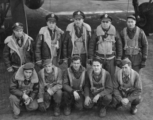 The airplane was heard giving a distress signal after it was hit by enemy fighters and left the formation. The aircraft ditched in the North Sea with the loss of all 10 crew members.