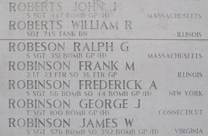 Source of information: Raf Dyckmans, Terry Hirsch, www.wwiimemorial.com, www.fold3.com - MACR, www.ancestry.com - 1930 Census, www.americanairmuseum.com, WWII Draft Card, www.tynglib.org/ralph-g-robeson-hero-square/