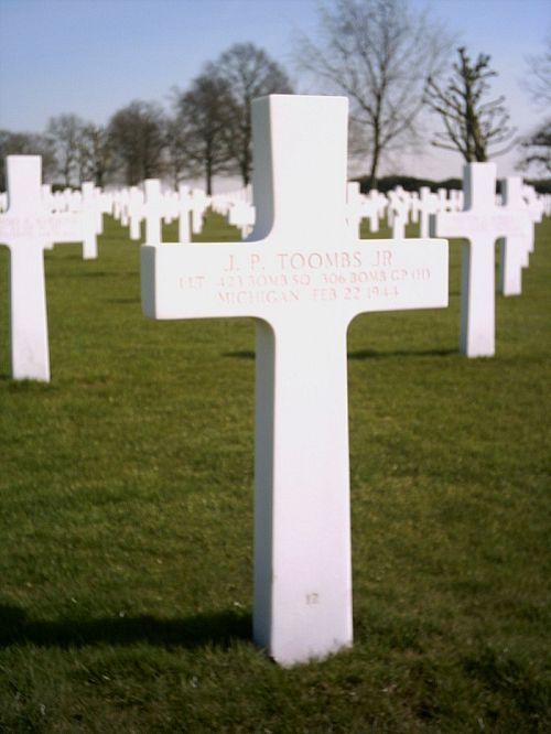 1st Lt J.P. Toombs Jr. graduated from Cooley High School in 1940 and attended college for one year. He was a salesman.He volunteered for the Air Corps of the Army of the United States in Detroit, Michigan on 13 April 1942.