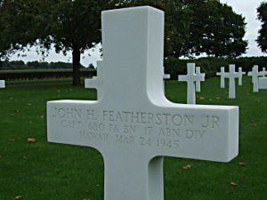 John H. Featherston Jr. attended the U.S. Army West Point Prep School at Schofield Barracks, Hawaii, where he competed for a Presidential Appointment to West Point. With the advent of war, his stay at West Point was cut short and his class graduated in January rather than in June 1943. His chosen branch was the Field Artillery and, after a brief leave at home, he proceeded to tho Field Artillery School at Fort Sill, Oklahoma. There, after finishing the basic course, he became interested in airborne troops and tactics. With little persuasion he decided to go to a Field Artillery Glider Battalion and consequently was sent to Camp Mackall, North Carolina, a glider training center, where he was assigned to the 17th Airborne Division which had just been newly created.