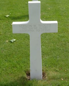 Pvt Vernon M. Troutt enlisted at Fort Rosecrans, California on 12 February 1942.Source of information: Terry Hirsch, www.wwiimemorial.com, www.archives.gov - WWII Enlistment record, www.ancestry.com - 1920/1930/1940 census / - Headstone and Interment Record, http://cgsc.contentdm.oclc.org/ - Fortune favored the brave: A history of the 334th infantry, 84th division Perry S. Wolff, WWII Draft Cards, Alabama, County Marriage Records, 1805-1967