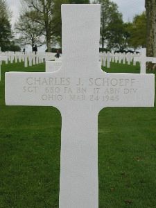 The 680th GFAB's mission was to land north of Wesel in Landing Zone S but the glider in which Sgt Schoepf was in, overshot its intended landing zone, placing them on a trajectory that would place their final landing across an open field, on or immediately near German lines. A German artillery shell hit his glider almost dead-on moments before it would have landed. Everyone on board was killed immediately.